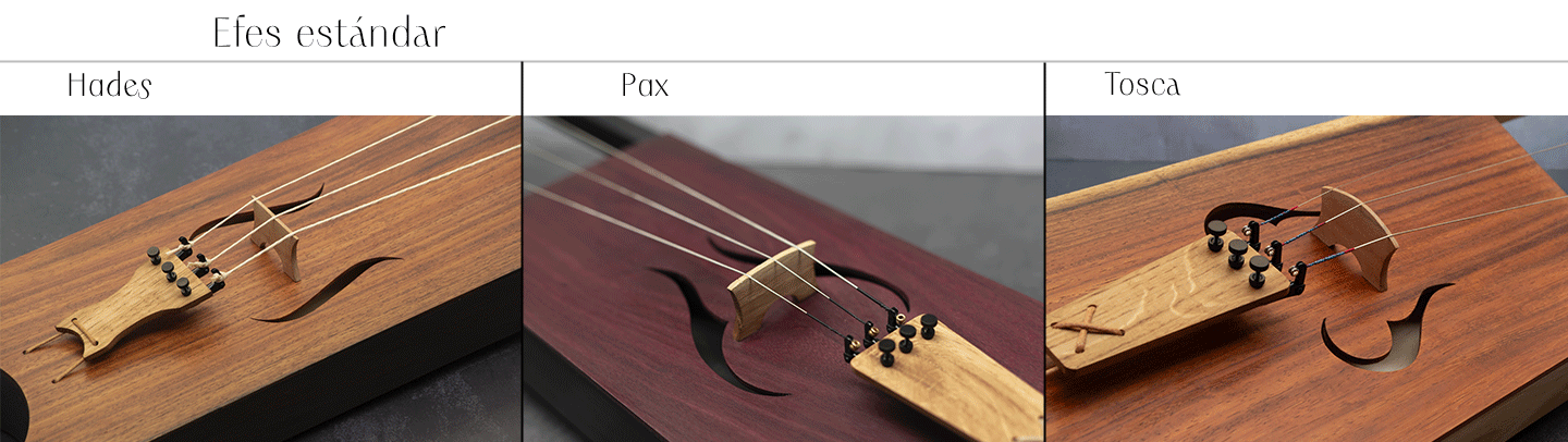 Personaliza tu tagelharpa eligiendo entre efes estándar o efes personalizadas.